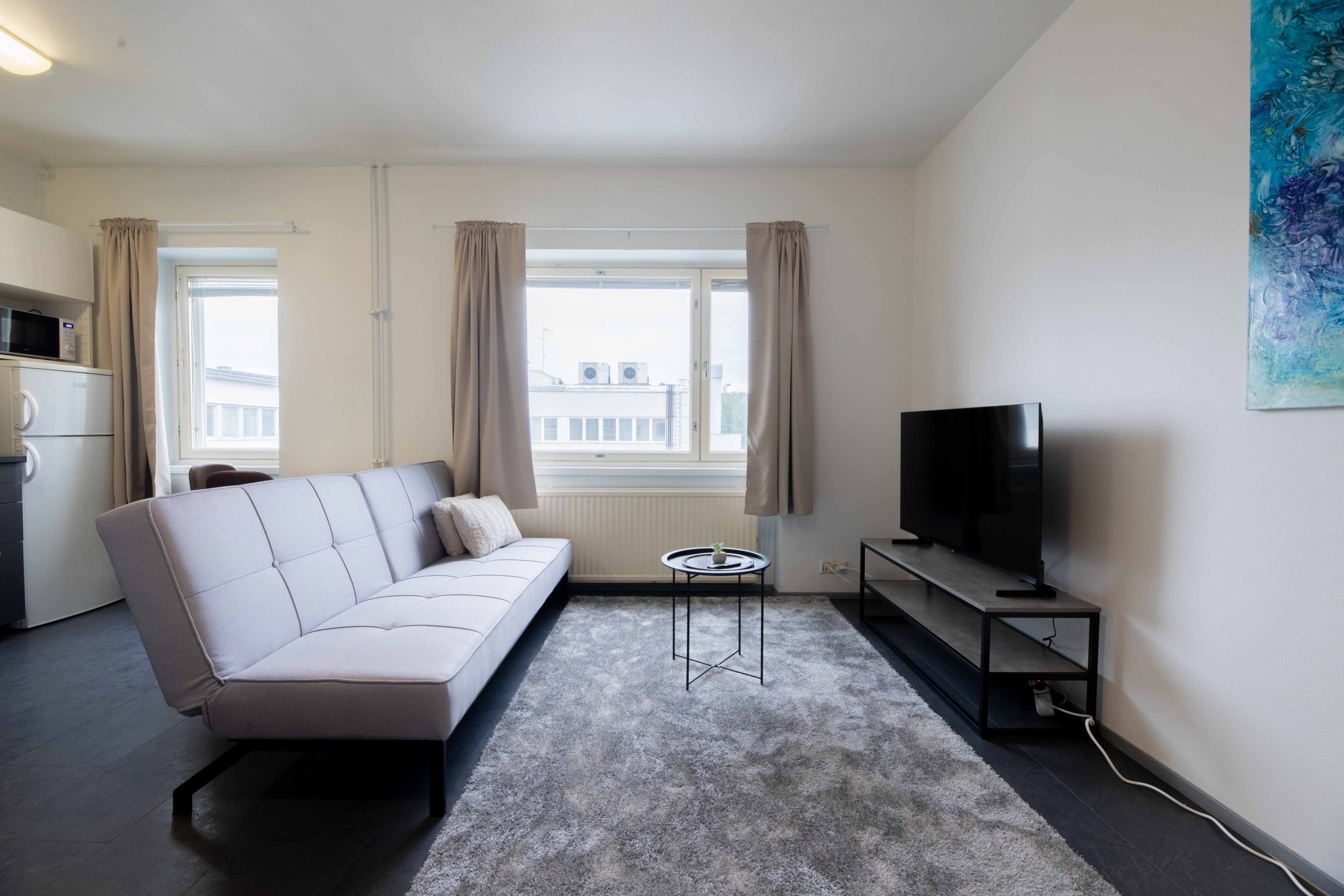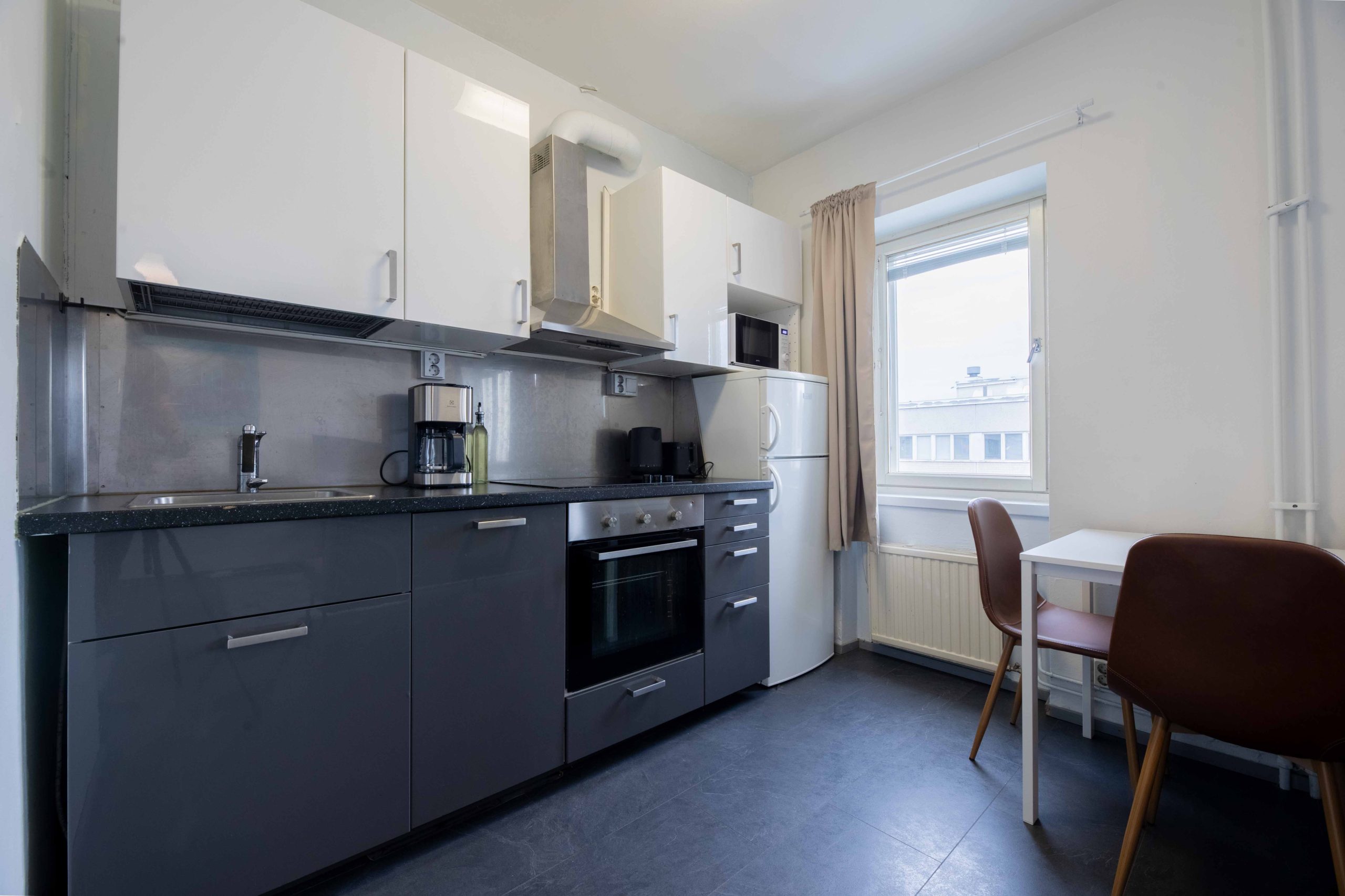 Die Wohnung befindet sich im Herzen der Dienstleistungen der Stadt – Lebensmittelgeschäfte, Restaurants und Cafés sind nur einen Steinwurf entfernt. Arbeitsplätze wie Stora Enso und Büros, aber auch Sportstätten wie Fitnessstudios und Parks sind gut erreichbar und sorgen für einen reibungslosen Ablauf des Alltags.
