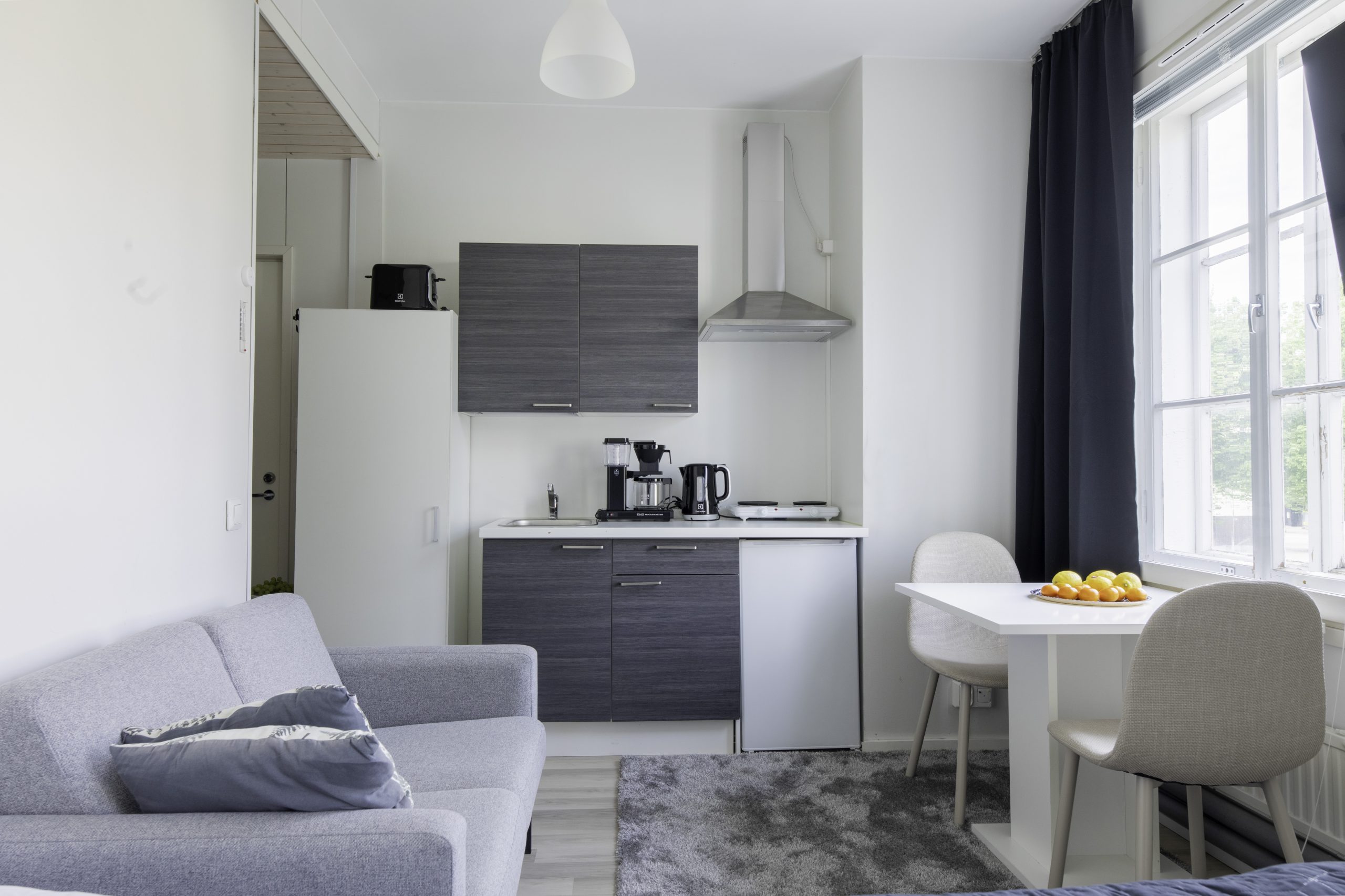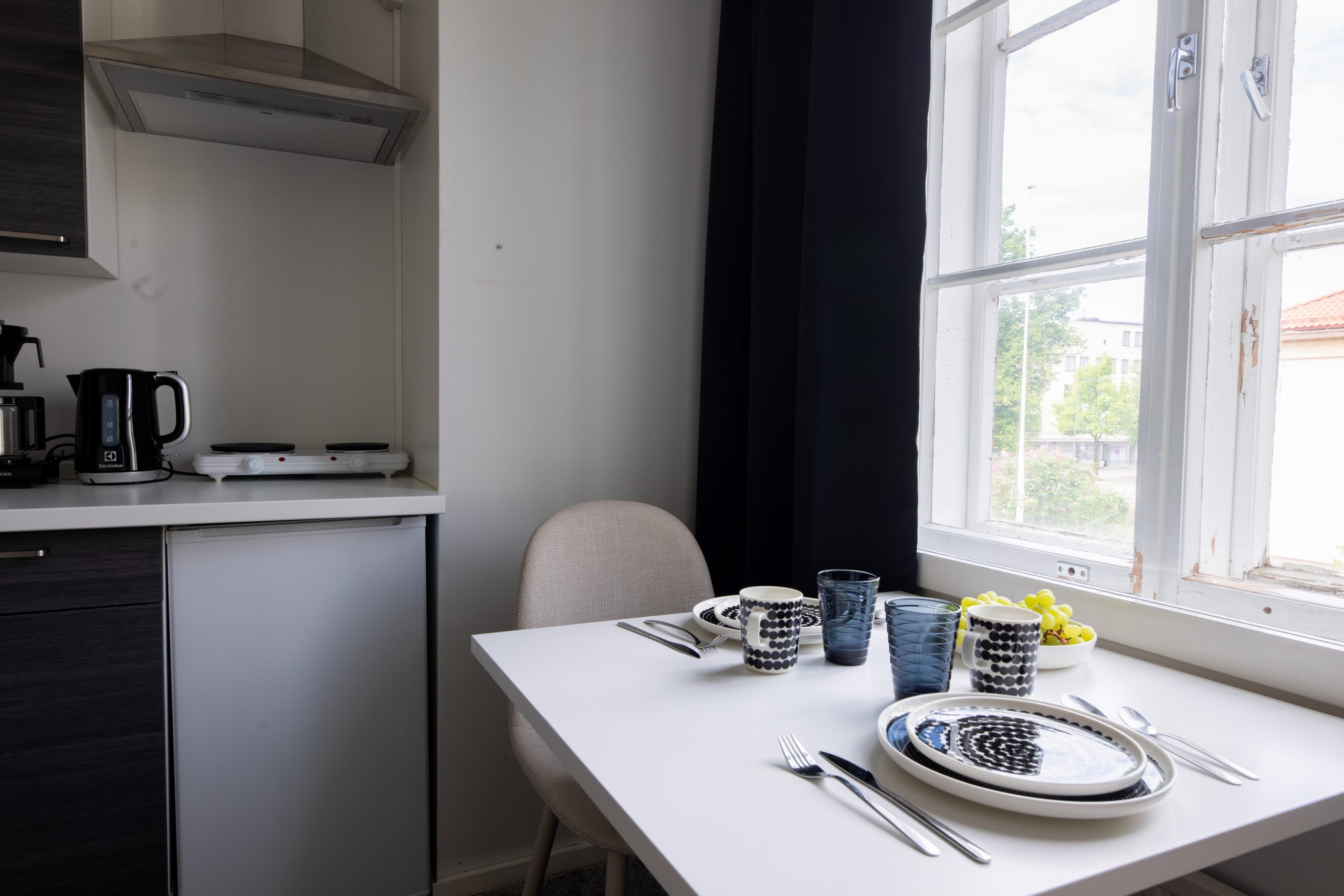 Die Wohnung befindet sich im Herzen der Dienstleistungen der Stadt – Lebensmittelgeschäfte, Restaurants und Cafés sind nur einen Steinwurf entfernt. Arbeitsplätze wie Stora Enso und Büros, aber auch Sportstätten wie Fitnessstudios und Parks sind gut erreichbar und sorgen für einen reibungslosen Ablauf des Alltags.